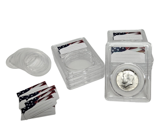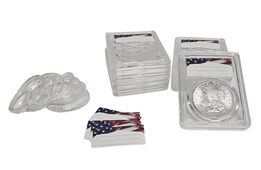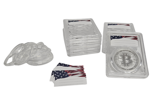 20-Pack 40mm Premium Coin Slab Holder & Blue Plastic Case for American Silver Eagles with Labels