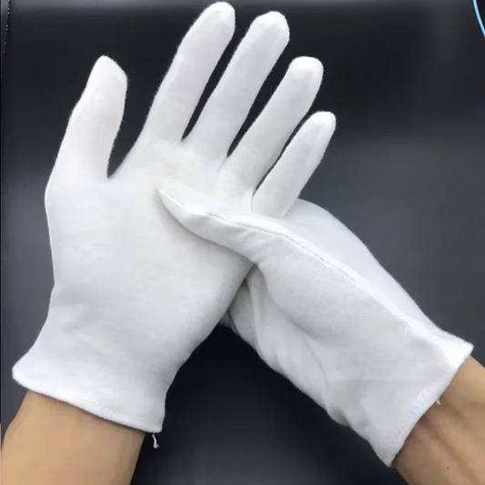 White Cotton High Stretch SPA Gloves For Coin Jewelry Silver Inspection - 6 Pair