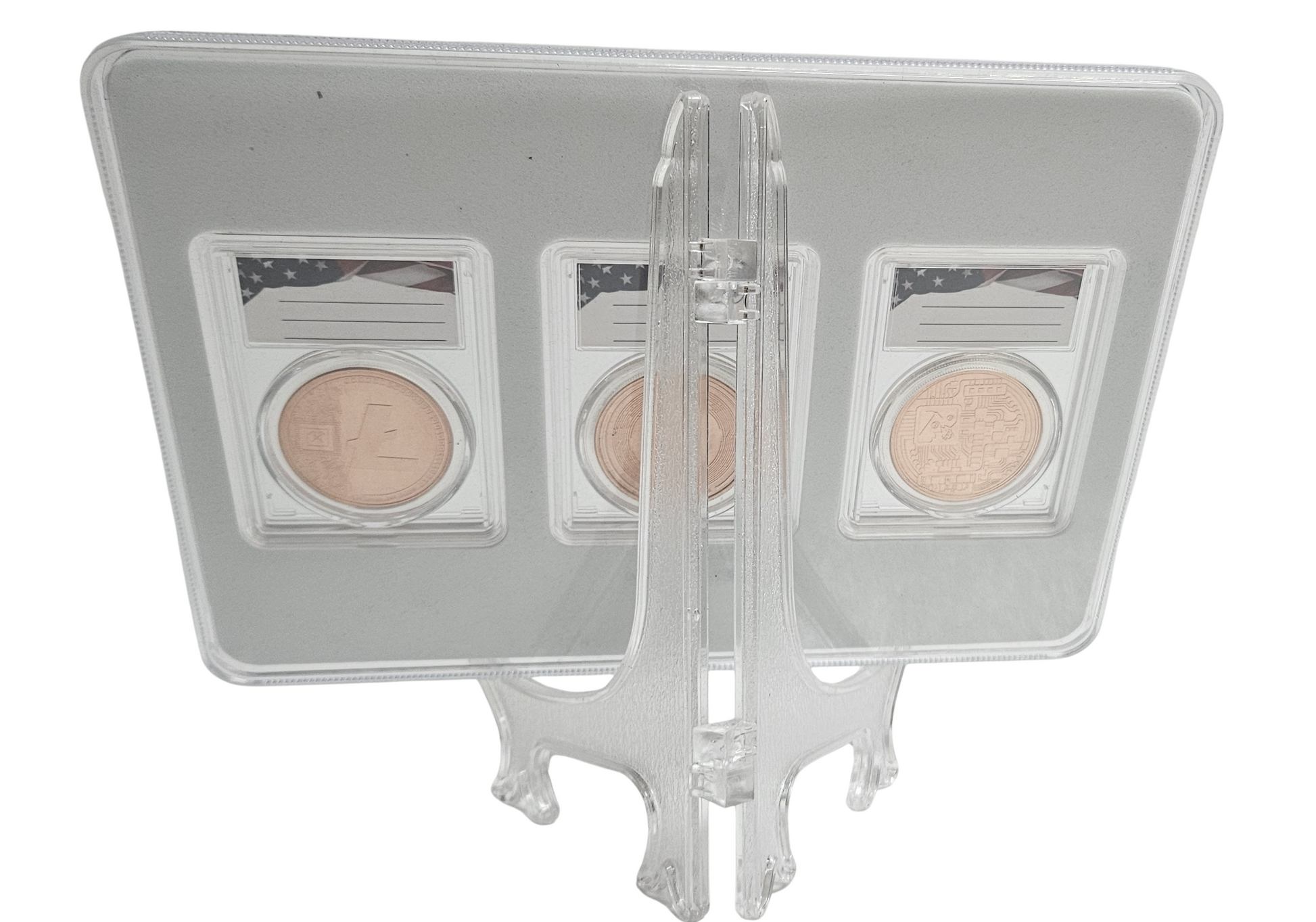 - SPECIFICATIONS: Set includes three 1-ounce copper rounds, professionally encased and ready for display or gifting